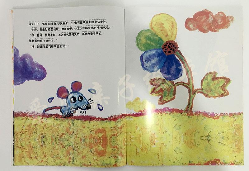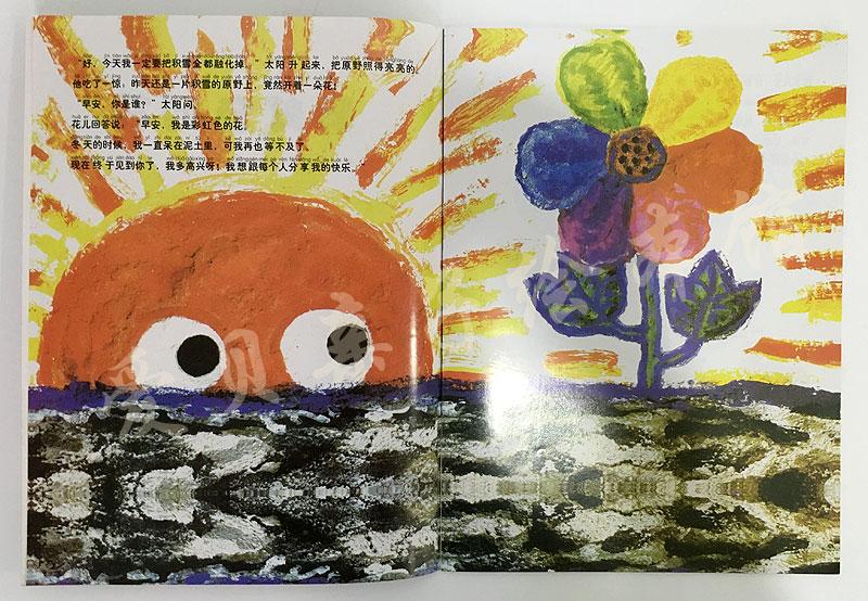 蚂蚁、蜥蜴、老鼠……小动物抱有着心事一个接一个地过来。花儿每次很慷慨地把自己的花瓣送给他们。随着季节的变换,彩虹色的花慢慢枯萎老去,被掩盖在白茫茫的雪地下。虽然她离开了现世,却给大家留下一片温情。冬去春来……生命可以轮回,乐于助人的精神则存留其中,给读者留下无穷的意味。
