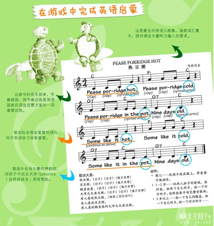 在家里,爸爸妈妈也不要光给孩子听光盘,可以按照书里的做法,带着孩子动起来!这也是孩子们学英语的一个好的开端。学过外语的人都知道,成年以后,单词会忘,语法会忘,可是童年学会的童谣儿歌却留在记忆里,永远也忘不了。音乐对孩子,有天然的吸引力。