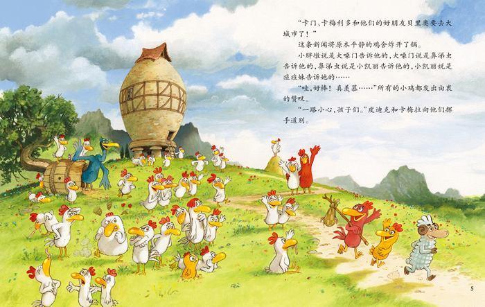 卡门、卡梅利多和贝里奥兴高采烈地去城里看公鸡爷爷。但令他们吃惊的是,城里人非常不懂礼貌,还粗鲁地对他们喊叫:“闪开!你们这些乡巴佬!你们在城里不受欢迎!”但一个特殊的比赛让这些城里人只能求助于乡下来的小鸡们。小鸡们大显身手的时刻到了……鸬鹚佩罗带着小鸡们到海边去学游泳。卡门、卡梅利多、小凯丽、贝里奥和小胖墩却无意中登上了一座逍遥岛。在这里每天都像过节一样,无限量提供糖果、蛋糕和各种美食,连河流都是冰镇薄荷水,大家沉浸在欢乐的享受中……可是,天下没有免费的午餐,这里真的是天堂吗?