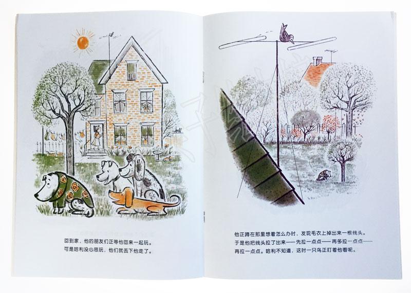 哈利这只小狗很调皮,他把自己玩得一身脏,从黑点白狗变成白点黑狗;哈利这只小狗很爱美,他不喜欢玫瑰图案的花毛衣,竟能让毛衣变成小鸟的窝;哈利这只小狗还很执着,为了让大嗓门的邻居别再唱歌,他的点子可有一箩筐……