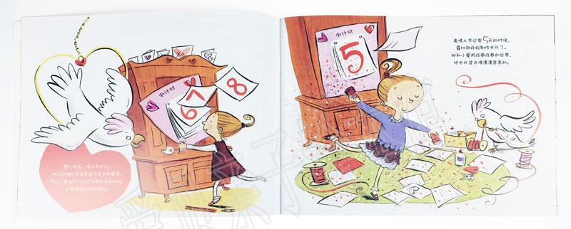 这是一本充满爱的小书,整个故事,也让我领悟到了应该怎样去传递我们的爱,看看书中的小主人公露比,这真是一个热心的小女孩,为了迎接2月14日的到来,她认真的为镇上的每一个人准备着礼物,写着祝福的卡片,爱心饼干,甜甜的糖果…最后的小插曲也是很巧妙的,露比和她的伙伴因为太累睡的太沉而错过了在2月14日送出礼物,然而结果并不是遗憾,因为,露比发现,每天都可以用心去表达爱,每天都可以说我爱你…是这样的,呵呵,受这本书的影响,我也开始给身边的朋友准备礼物,试试上,我的收获是非常大的,许多朋友都表现出了久违的欣喜,不是什么特殊的日子,也可以通过很简单的事情给大家带去快乐…每天都说我爱你,每时每刻分享爱~